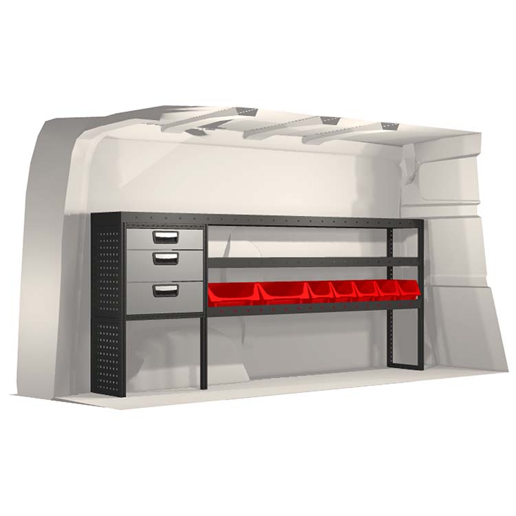 Kaluste-ehdotelmat on suunniteltu sopimaan optimaalisesti ajoneuvoon niin, että kaluste on sekä mahdollisimman toimiva että turvallinen. Kaluste-ehdotelmat on kehitetty ammattikäyttöön täyttämään eri liiketoiminta-alueiden tarpeet huoltotehtävissä. Kaikki hyllyt on varustettu kumimatoilla ja laatikot pitävät sisällään vaahtomuovilevyt. Kaluste-ehdotelmat pitävät sisällään myös kaikki asennustarvikkeet.
