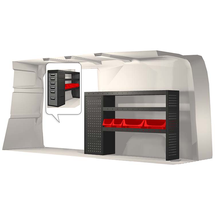 Kaluste-ehdotelmat on suunniteltu sopimaan optimaalisesti ajoneuvoon niin, että kaluste on sekä mahdollisimman toimiva että turvallinen. Kaluste-ehdotelmat on kehitetty ammattikäyttöön täyttämään eri liiketoiminta-alueiden tarpeet huoltotehtävissä. Kaikki hyllyt on varustettu kumimatoilla ja laatikot pitävät sisällään vaahtomuovilevyt. Kaluste-ehdotelmat pitävät sisällään myös kaikki asennustarvikkeet.