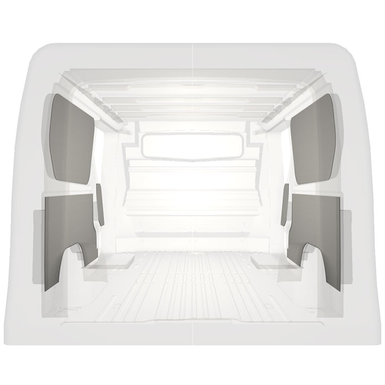 Kevyt valmiiksi leikattu sisäseinien paneeliverhous Renault Trafic / Opel Vivaro / Fiat Talento / Nissan NV300, jossa on kaksoissivuovet. Verhouspaneelimme luovat valoisan ja miellyttävän työympäristön, ja ne on helppo pyyhkiä puhtaaksi.