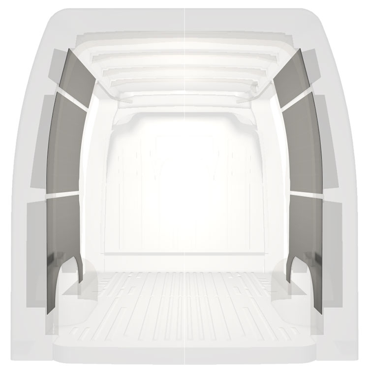 Kevyt valmiiksi leikattu sisäseinien paneeliverhous Renault Master / Opel Movano / Nissan NV400, jossa on kaksoissivuovet. Verhouspaneelimme luovat valoisan ja miellyttävän työympäristön, ja ne on helppo pyyhkiä puhtaaksi.