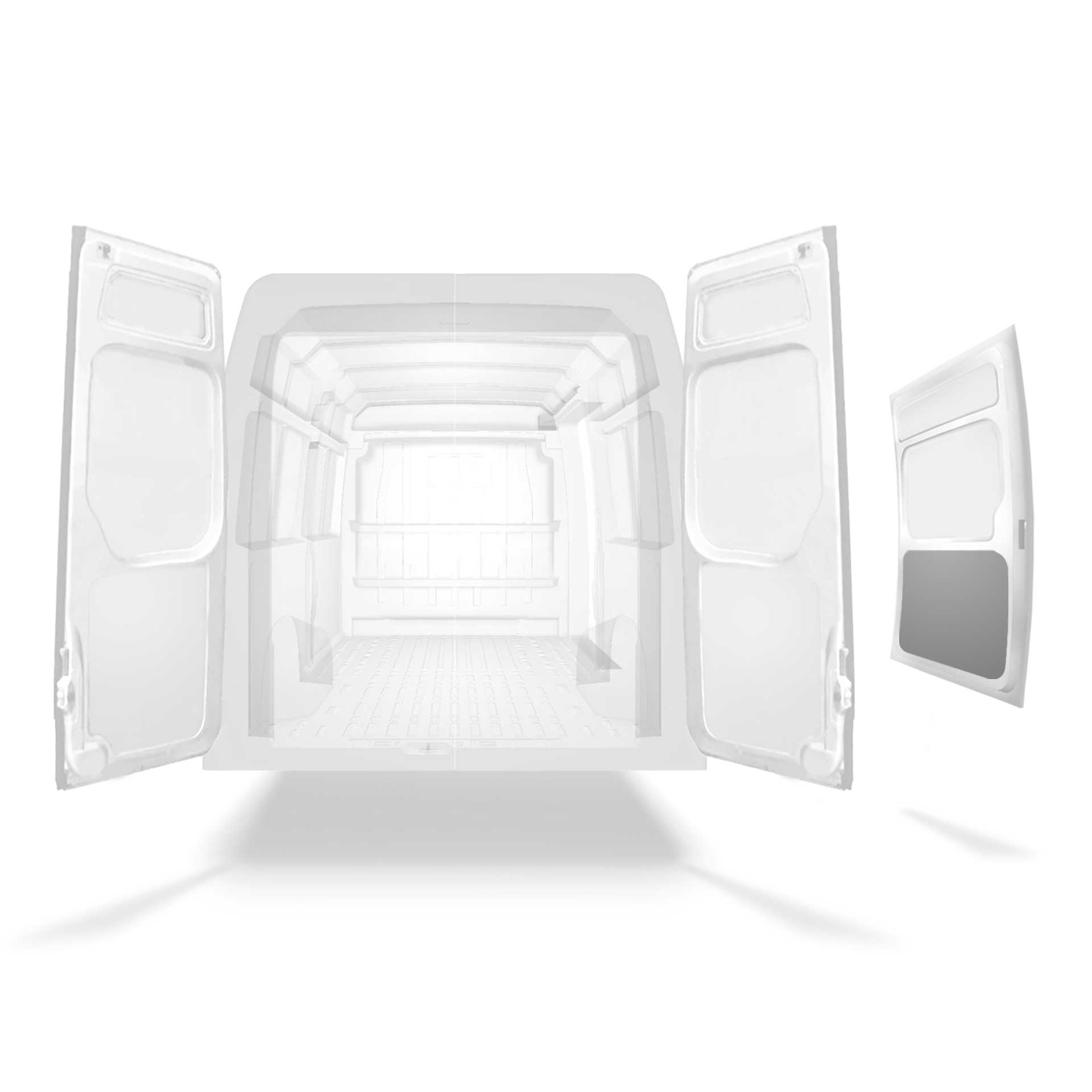 Kevyt sivuoven alaosan verhous Citroën Jumper / Peugeot Boxer / Fiat Ducato, joissa on sivuovi oikealla puolella. Verhous vähentää sisätilojen kulumista, ja auttaa säilyttämään auton jäännösarvon.