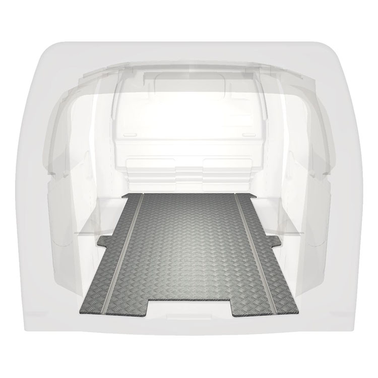 Kevyissä ja kestävissä Citroën Jumpy / Peugeot Expert / Toyota ProAce tarkoitetuissa erikoispitkissä lattioissa on luistamaton alumiinikulutuspinta ja kuormakiskot (pitkittäiset) kalusteiden ja muiden lisävarusteiden turvallista ja nopeaa asennusta varten.