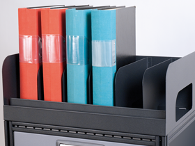 Stand with six compartments for A4 ring binders. Intended for placement directly on a 324 mm deep drawer unit.