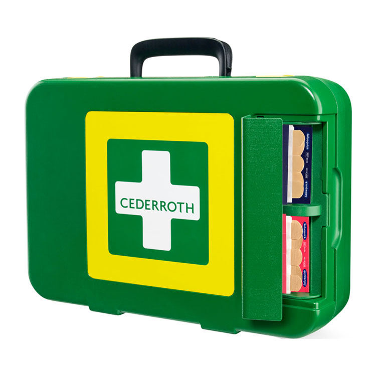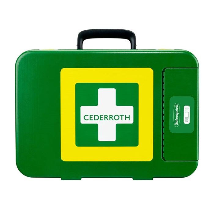 Cederroth First Aid Kit X-Large on reilun kokoinen ja hyvin varustettu ensiapupakki. Kovamuovista valmistettu pakki pitää pölyn, kosteuden ja lian pakin ulkopuolella vaativissakin olosuhteissa. Ulkokannessa olevasta laastariautomaatista laastarin saa otettua helposti samanaikaisesti, kun pakin sisältö pysyy koskemattomana ja hygieenisen puhtaana.