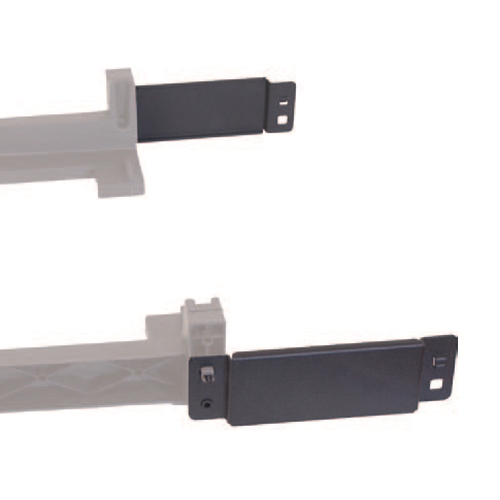 The extension brackets are mounted onto the fixed shelf for Mobil-Box (part number 59773-03), and are used when you want to place a Mobil-Box on a fixed shelf in a 486 mm deep racking module. The brackets are supplied in pairs, fittings included.