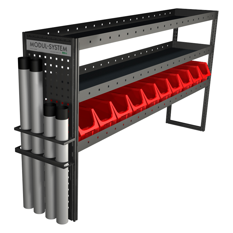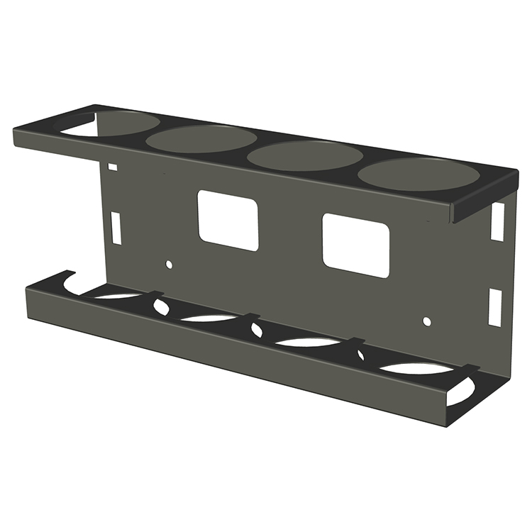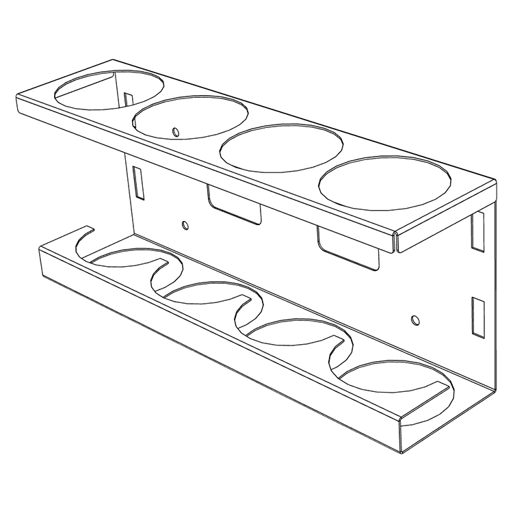 Stand for up to four tubes with a maximum diameter of 70 mm. The holder can be mounted to a shelf end support or the wall.