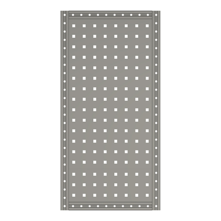 Shelf end supports with tool board are available in several heights and depths. The T-tracks integrated in the profiles are used for securing cargo, attaching accessories and for versatile surface mounting.