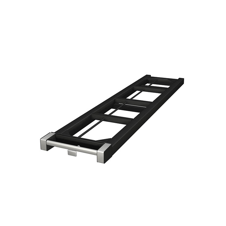 Lightweight and robust base frame made from ultra-high strength steel, with a front in anodized aluminum. A loading platform can be mounted to the base frame for increased functionality.