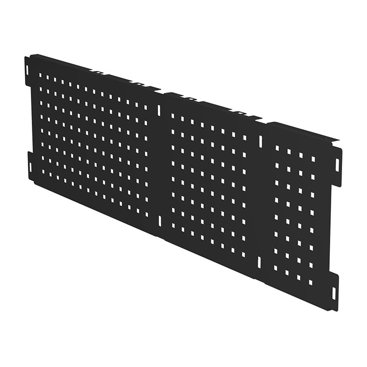 Työkalulevy erittäin pitkään laatikkoyksikköön. Suojaa laatikkoa ja parantaa sen ulkonäköä. Työkalulevyssä on 9 mm:n reiät 34 mm:n välein, mikä mahdollistaa työkalupidikkeiden ja muiden lisävarusteiden kiinnittämisen. Asennetaan ruuveilla (ei mukana).