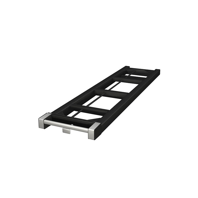 Lightweight and robust base frame made from ultra-high strength steel, with a front in anodized aluminum. A loading platform can be mounted to the base frame for increased functionality.