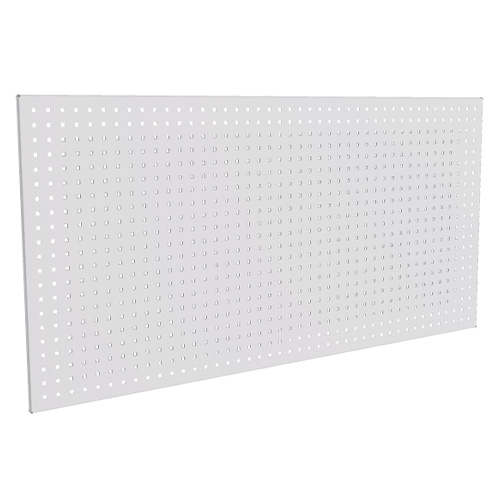 The tool board is designed for mounting on a wall. The metal plate is punched with 9 mm holes at 34 mm pitch spacing. With the addition of tool hooks it provides a flexible system for tool storage, etc.