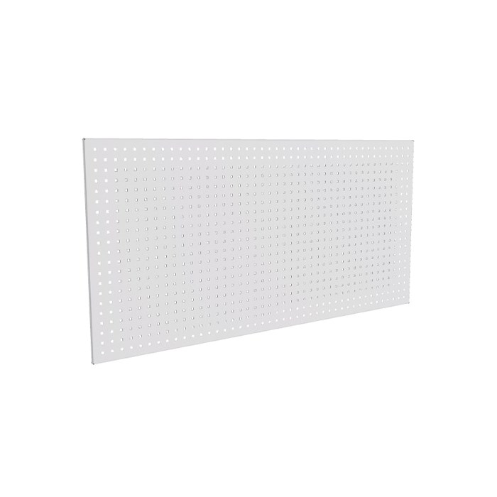 The tool board is designed for mounting on a wall. The metal plate is punched with 9 mm holes at 34 mm pitch spacing. With the addition of tool hooks it provides a flexible system for tool storage, etc.