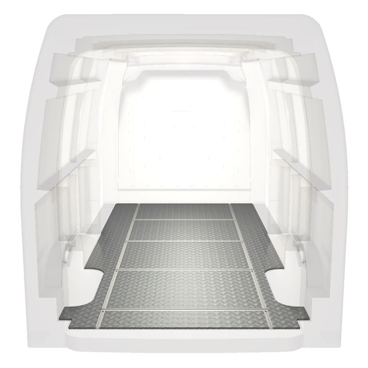 Kevyissä ja kestävissä Renault Master / Opel Movano / Nissan NV400 tarkoitetuissa lattioissa on luistamaton alumiinikulutuspinta ja kuormakiskot (pitkittäiset ja poikittaiset) kalusteiden ja muiden lisävarusteiden turvallista ja nopeaa asennusta varten.