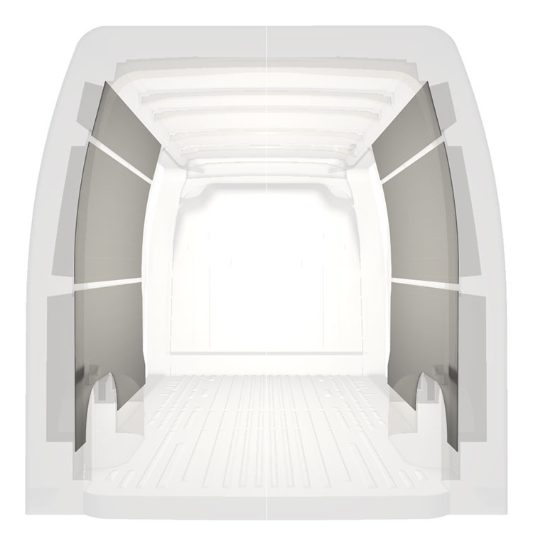 Kevyt valmiiksi leikattu sisäseinien paneeliverhous Renault Master / Opel Movano / Nissan NV400, jossa on kaksoissivuovet. Verhouspaneelimme luovat valoisan ja miellyttävän työympäristön, ja ne on helppo pyyhkiä puhtaaksi.