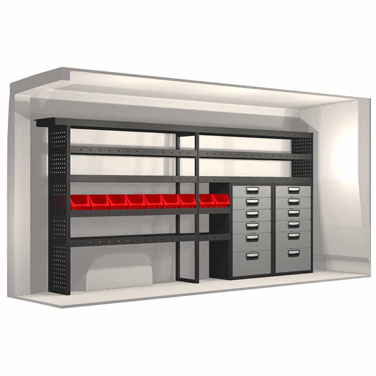 Kaluste-ehdotelmat on suunniteltu sopimaan optimaalisesti ajoneuvoon niin, että kaluste on sekä mahdollisimman toimiva että turvallinen. Kaluste-ehdotelmat on kehitetty ammattikäyttöön täyttämään eri liiketoiminta-alueiden tarpeet huoltotehtävissä. Kaikki hyllyt on varustettu kumimatoilla ja laatikot pitävät sisällään vaahtomuovilevyt. Kaluste-ehdotelmat pitävät sisällään myös kaikki asennustarvikkeet.