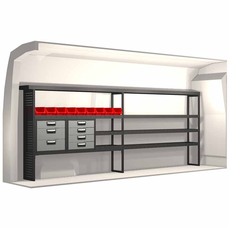Kaluste-ehdotelmat on suunniteltu sopimaan optimaalisesti ajoneuvoon niin, että kaluste on sekä mahdollisimman toimiva että turvallinen. Kaluste-ehdotelmat on kehitetty ammattikäyttöön täyttämään eri liiketoiminta-alueiden tarpeet huoltotehtävissä. Kaikki hyllyt on varustettu kumimatoilla ja laatikot pitävät sisällään vaahtomuovilevyt. Kaluste-ehdotelmat pitävät sisällään myös kaikki asennustarvikkeet.
