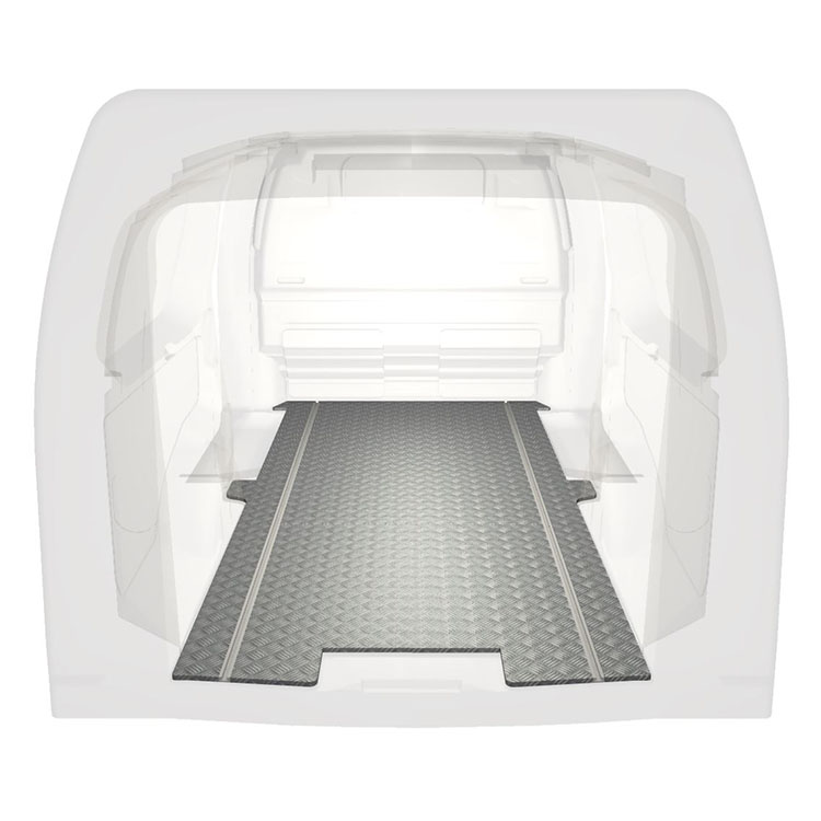 Kevyissä ja kestävissä Citroën Jumpy / Peugeot Expert / Toyota ProAce tarkoitetuissa erikoispitkissä lattioissa on luistamaton alumiinikulutuspinta ja kuormakiskot (pitkittäiset) kalusteiden ja muiden lisävarusteiden turvallista ja nopeaa asennusta varten.