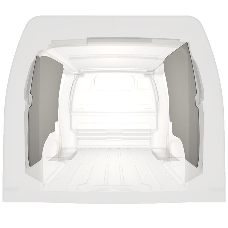 Kevyt sisäseinien kokopaneeliverhous Citroën Jumpy / Peugeot Expert / Toyota ProAce, jossa on kaksoissivuovet. Verhouspaneelimme luovat valoisan ja miellyttävän työympäristön, ja ne on helppo pyyhkiä puhtaaksi.