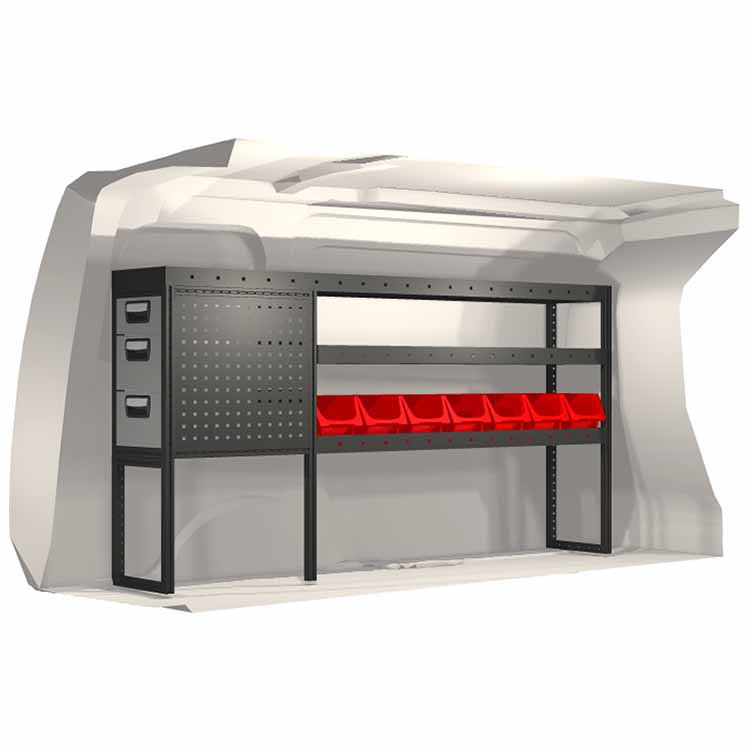 Kaluste-ehdotelmat on suunniteltu sopimaan optimaalisesti ajoneuvoon niin, että kaluste on sekä mahdollisimman toimiva että turvallinen. Kaluste-ehdotelmat on kehitetty ammattikäyttöön täyttämään eri liiketoiminta-alueiden tarpeet huoltotehtävissä. Kaikki hyllyt on varustettu kumimatoilla ja laatikot pitävät sisällään vaahtomuovilevyt. Kaluste-ehdotelmat pitävät sisällään myös kaikki asennustarvikkeet.