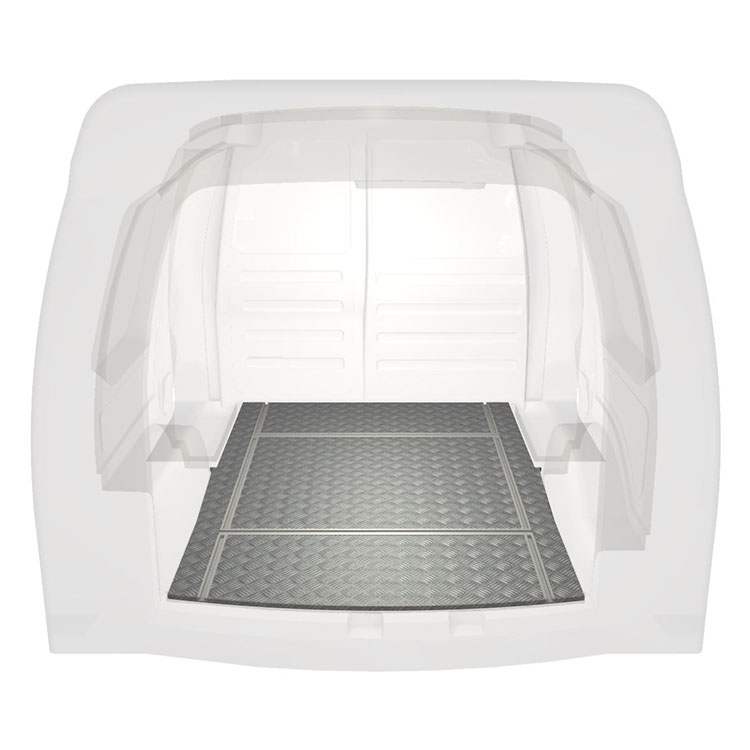 Kevyissä ja kestävissä Volkswagen Caddy tarkoitetuissa lattioissa on luistamaton alumiinikulutuspinta ja kuormakiskot (pitkittäiset ja poikittaiset) kalusteiden ja muiden lisävarusteiden turvallista ja nopeaa asennusta varten.