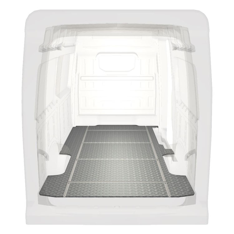 Kevyissä ja kestävissä Volkswagen Crafter / MAN TGE tarkoitetuissa lattioissa on luistamaton alumiinikulutuspinta ja kuormakiskot (pitkittäiset ja poikittaiset) kalusteiden ja muiden lisävarusteiden turvallista ja nopeaa asennusta varten.