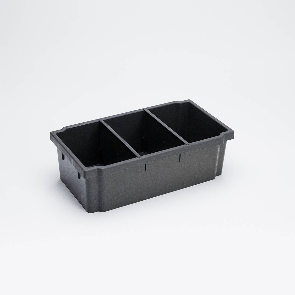Inserts are used for more efficient storage space in drawers. Available in depths of 324 mm and 486 mm, and in two heights, to achieve optimal load capacity in low- and medium-height drawers. Includes transverse and longitudinal dividers for dividing insert into compartments as desired.