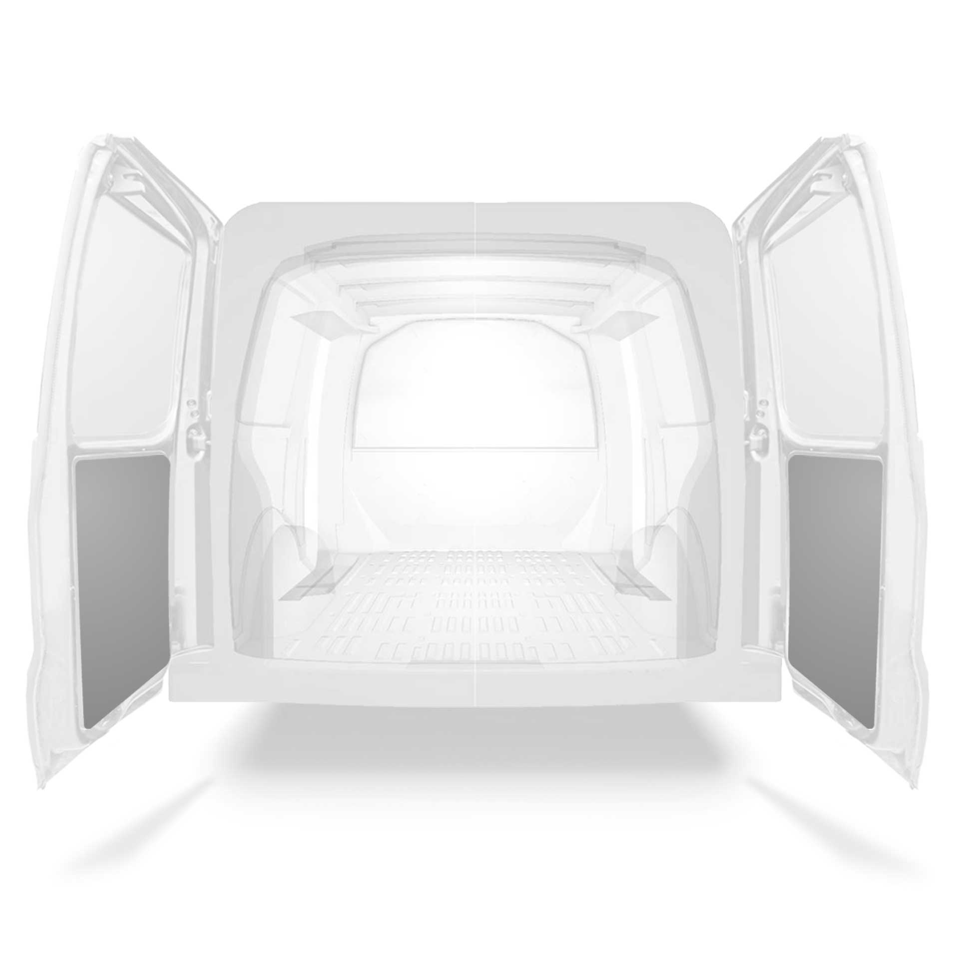 The rear door linings are designed and fabricated to fit in the sections of the rear door/tailgate of the vehicle to minimize weight. The liners protect the vehicle, create a bright working environment and are easy to wipe clean.